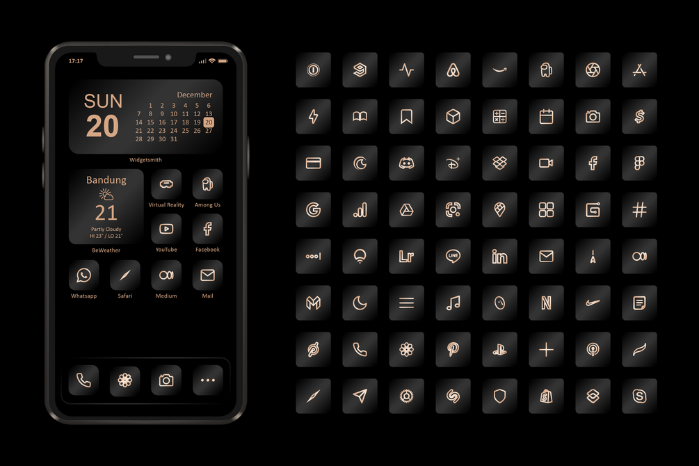 A simple, elegant icon set of 145 custom app icons, made for iOS 14 and above. Includes wallpapers, instructions, with light gold, rose gold, grayish blue and red color options. Purchase and get access to new design, with a link to download the new files.